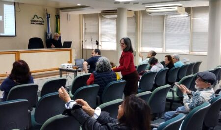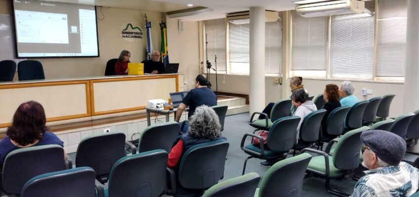 A reunião foi conduzida pelos diretores de Aposentadoria e Pensões da DS/Rio, Auditores-Fiscais Denise de Alvim Brito e Arnaud da Silva.