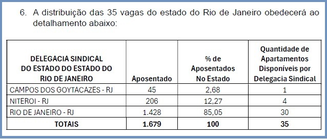 Os nomes sorteados, que integravam uma lista de 102 filiados inscritos, irão ocupar apartamentos individuais, duplos e triplos, no setor Village do hotel. Os membros da diretoria da DS/Rio serão alocados à medida que forem disponibilizadas novas vagas.