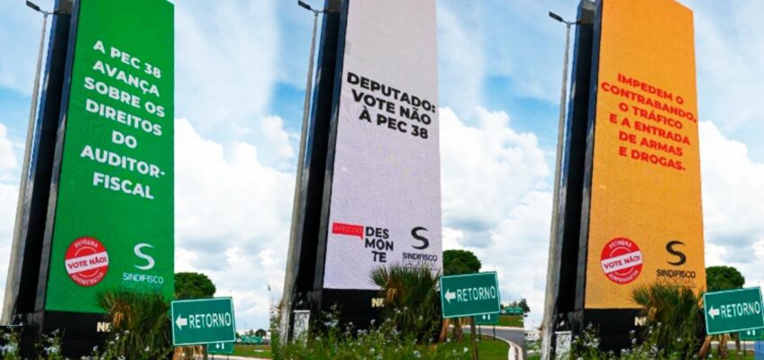 O Sindifisco Nacional lançou, no dia 4 de novembro, campanha nacional de comunicação contra a Reforma Administrativa (PEC 38/2025). Em parceria com empresa especializada em mídia digital, o Sindicato está ratificando seu posicionamento contrário à PEC através de painéis de LED instalados em locais de grande visibilização, em Brasília, além de divulgação nas redes sociais e na rádio CBN.