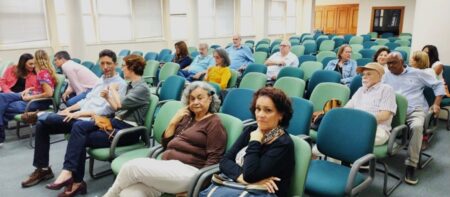Enquanto aguardavam informações sobre a reunião que transcorria em Brasília, entre o Sindifisco Nacional e o Ministério da Gestão e da Inovação (MGI), filiados ativos e aposentados, reunidos na sede da DS/Rio, na tarde de 14 de maio, transformaram a vigília sindical proposta pelo Comando Nacional de Mobilização (CNM) em nova oportunidade para uma conversa sobre o movimento reivindicatório, a reabertura das negociações com o governo e questões internas do interesse dos Auditores-Fiscais da Receita Federal.