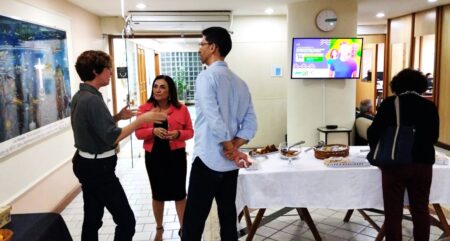 Temas – No decorrer da tarde, os representantes da diretoria da DS/Rio no encontro, Auditores-Fiscais Catia Beserra (presidente) e Alexandre Teixeira (Suplente e coordenador do Comando Local de Mobilização – CLM-RJ), e da Direção Nacional, Cleber Magalhães (Relações Internacionais e Intersindicais), abordaram temas que interessam e preocupam a categoria.